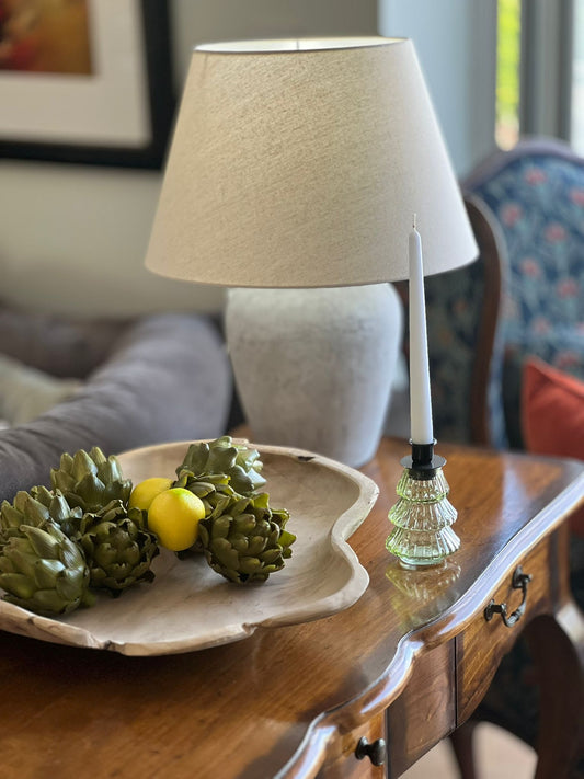 Antique-Style White Table Lamp with Linen Shade