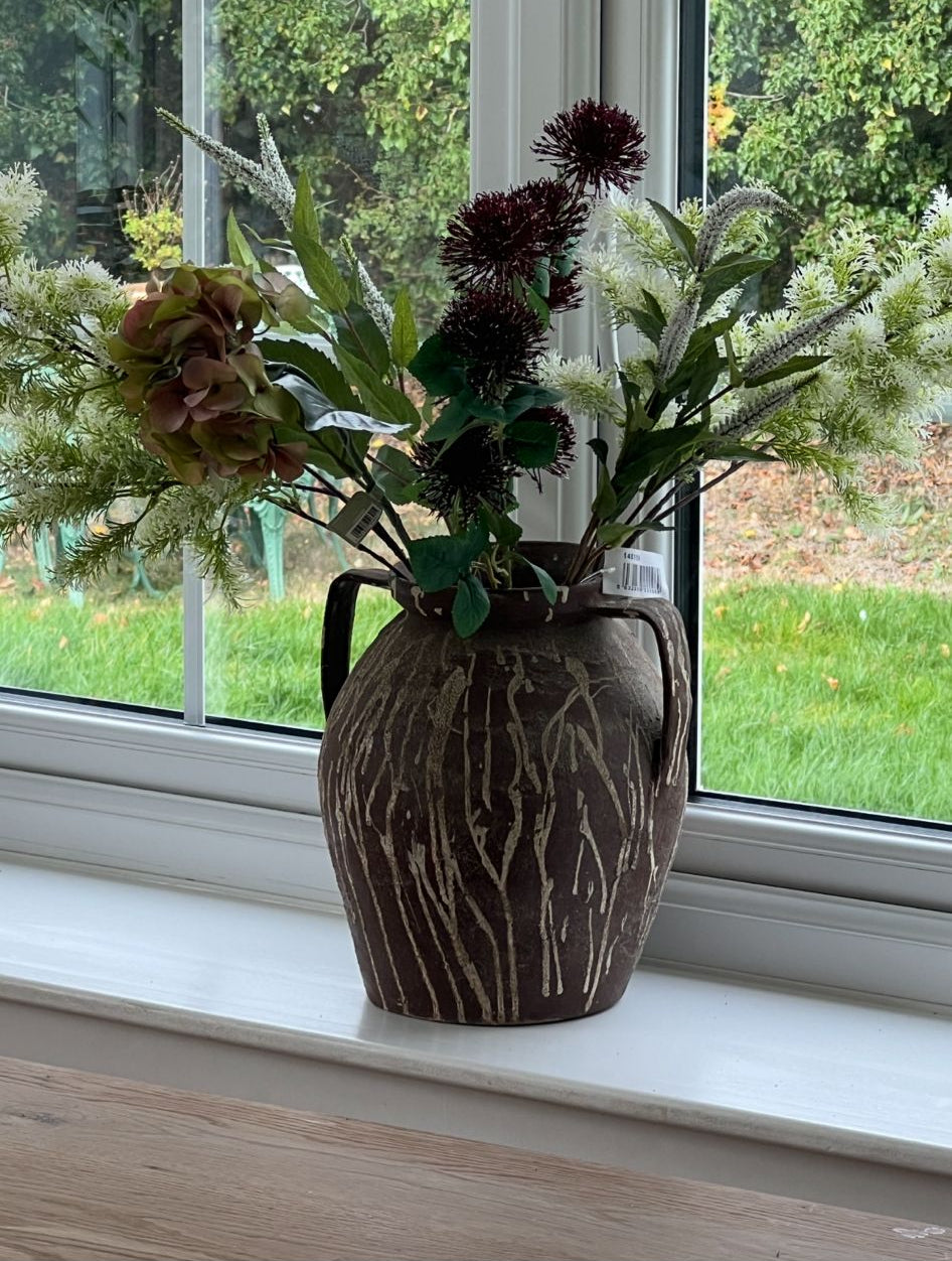 A striking large Hungarian pottery jug with authentic rustic charm. Measuring 40x35cm, this vintage piece showcases traditional craftsmanship, earthy tones, and a beautiful aged patina. Perfect as a decorative statement on its own or styled with dried flowers in farmhouse, rustic, or country-inspired