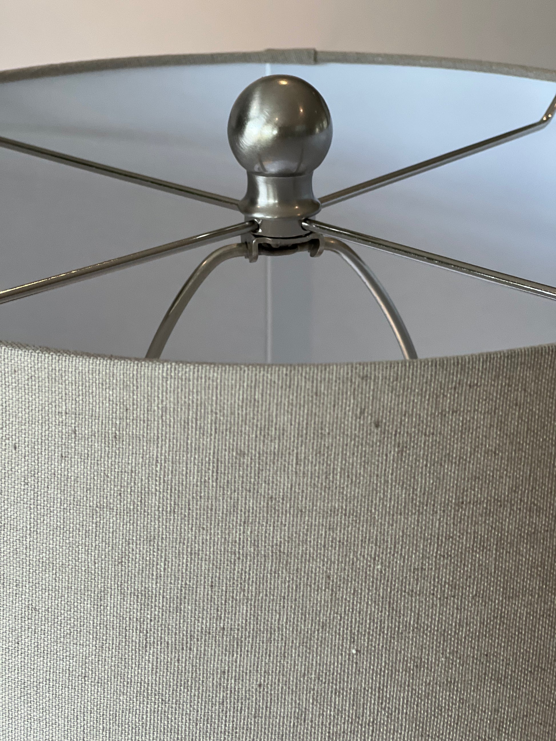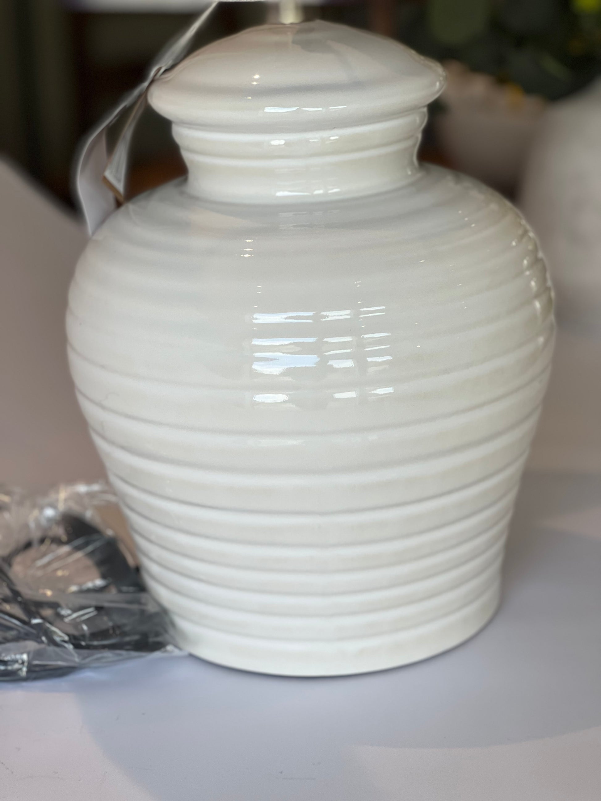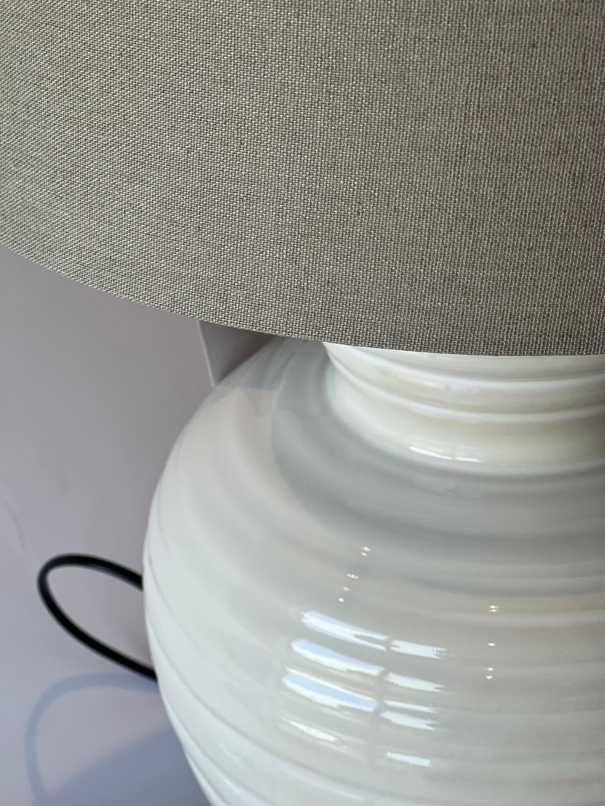 Large White Rippled Ceramic Table Lamp with Linen Shade
