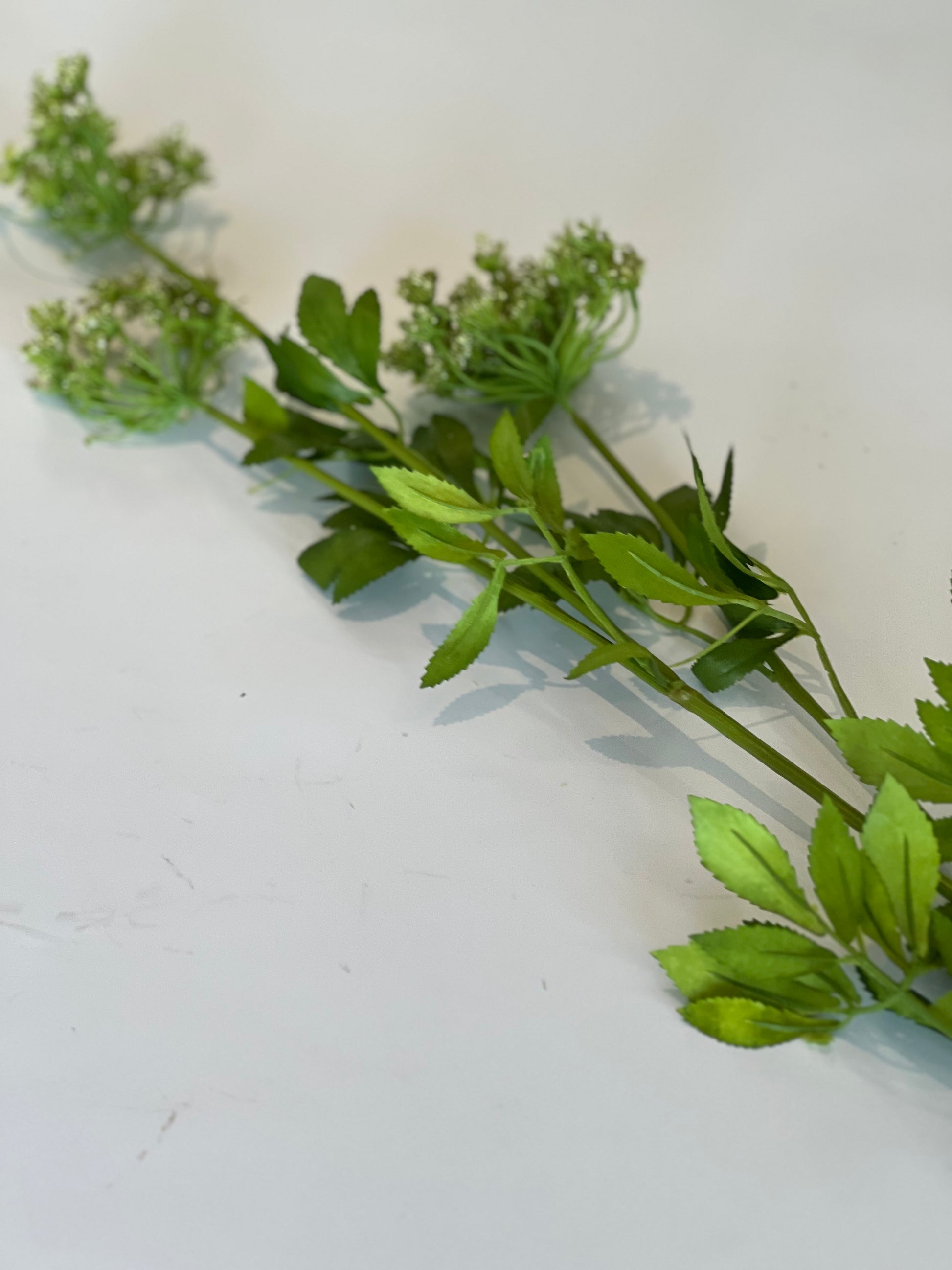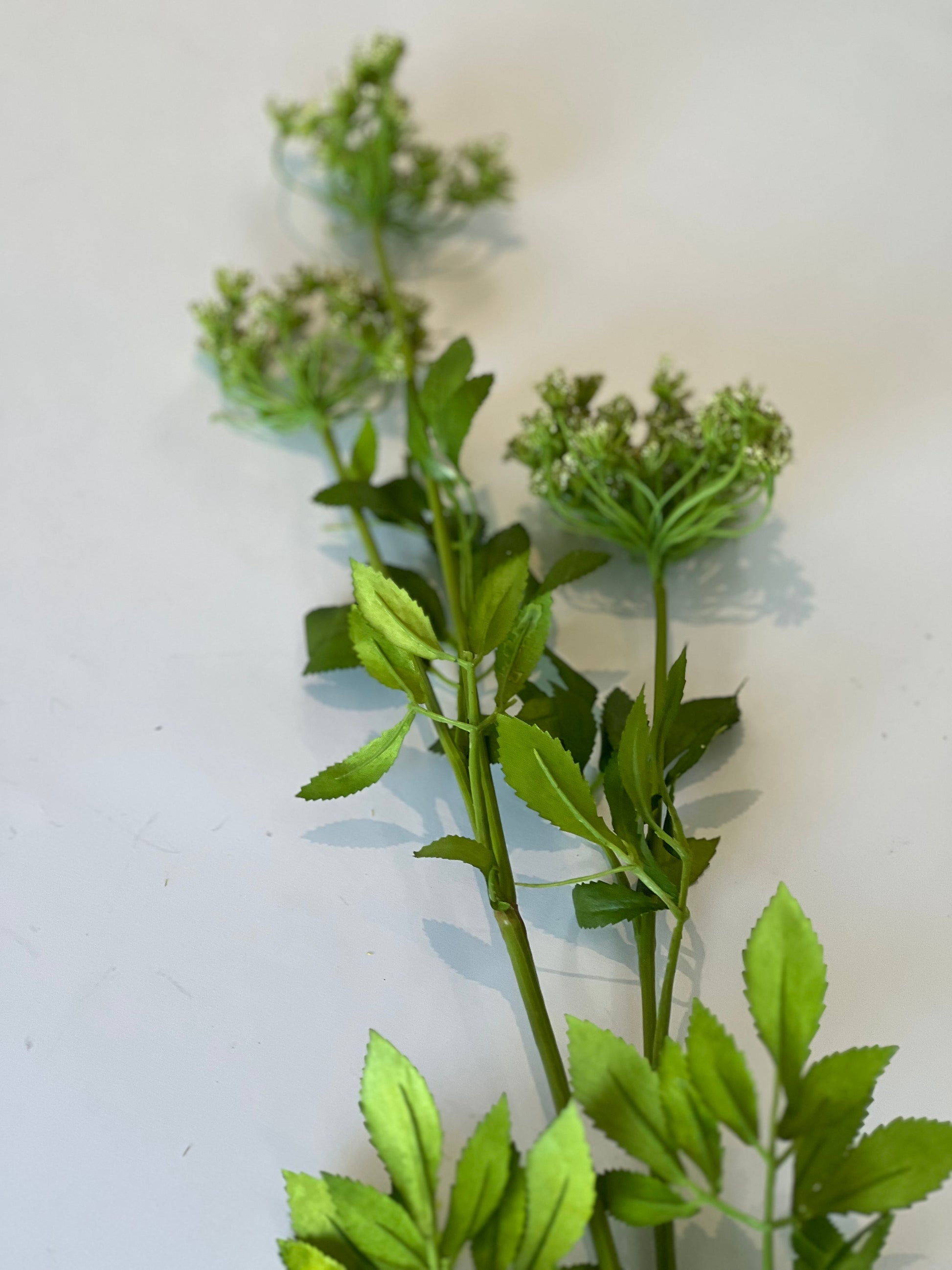 Tall faux cow parsley wildflower, botanically accurate with delicate white blooms and green foliage. Perfect for rustic or modern floral arrangements.