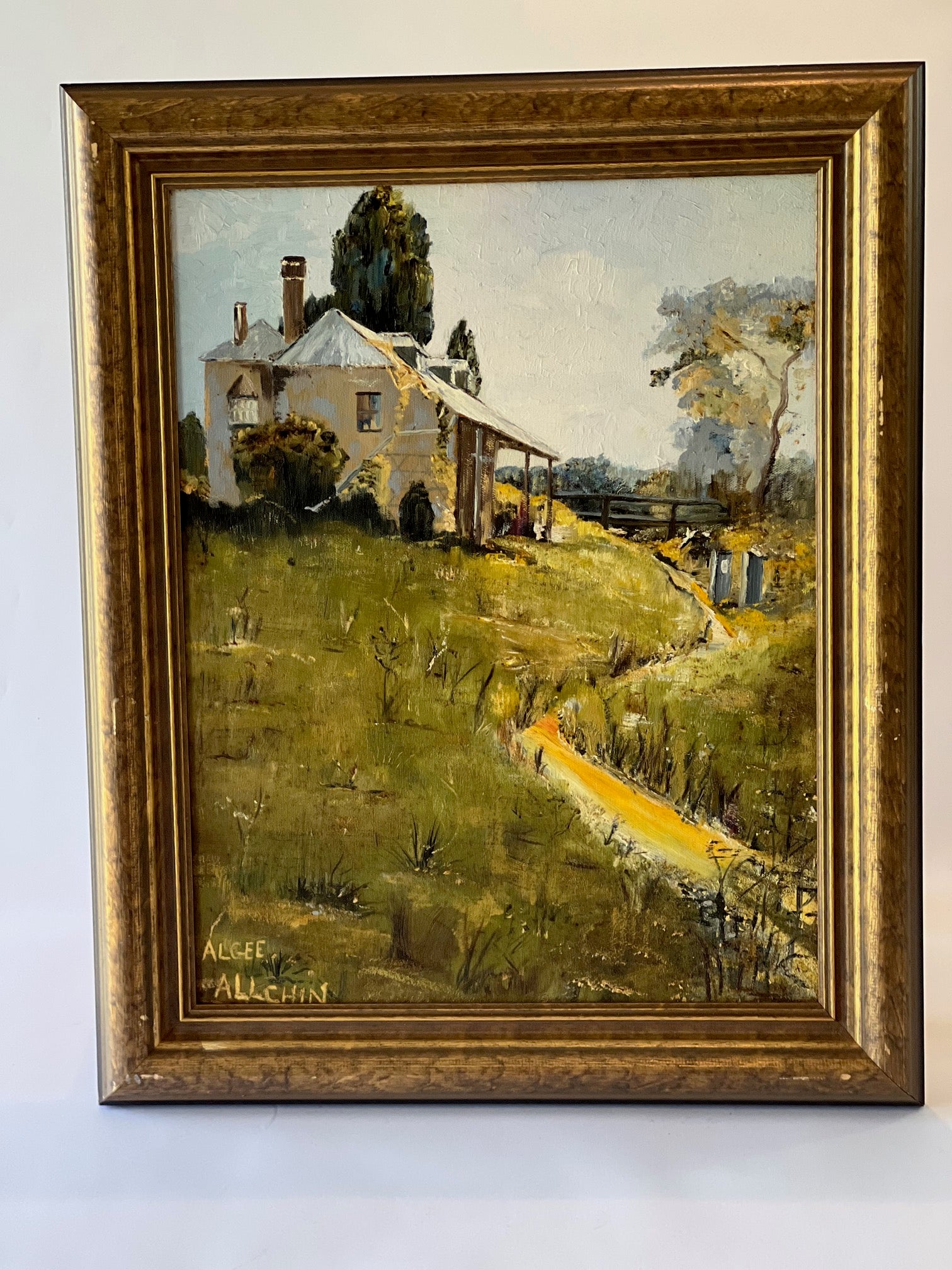 Vintage Oil Painting – Landscape in Blues, Greens & Yellows